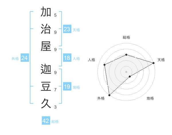 加治屋 迦豆久さんの外格は24画の5点!