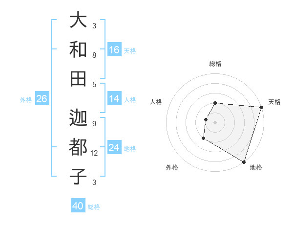 大和田 迦都子さんを姓名の画数から五運を鑑定