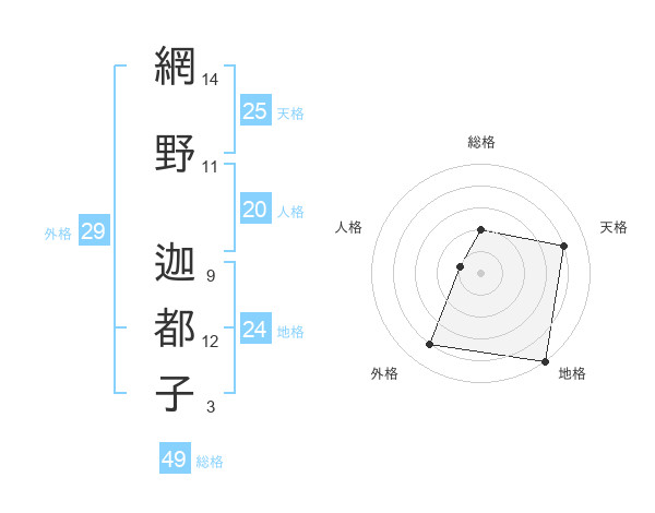 網野 迦都子さんを姓名の画数から五運を鑑定