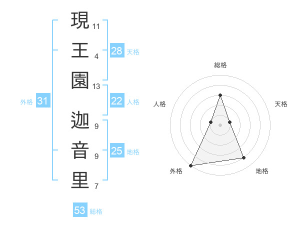 現王園 迦音里さんの外格は31画の5点!