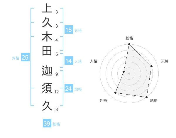 上久木田 迦須久さんの総格は39画の5点!