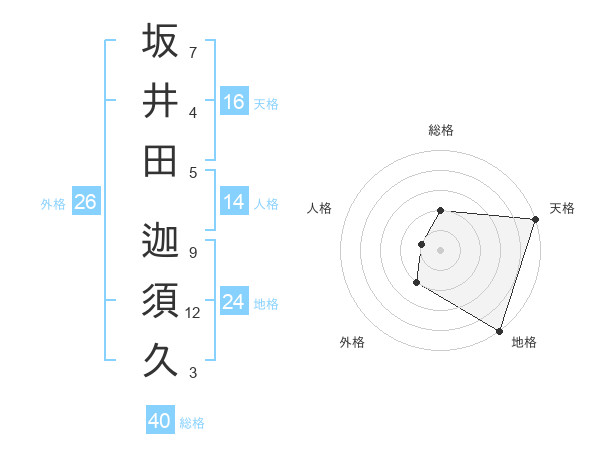 坂井田 迦須久さんの地格は24画の5点!