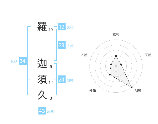 羅 迦須久さんの天格は19画の1点!