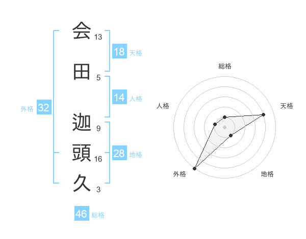 会田 迦頭久さんを姓名の画数から五運を鑑定