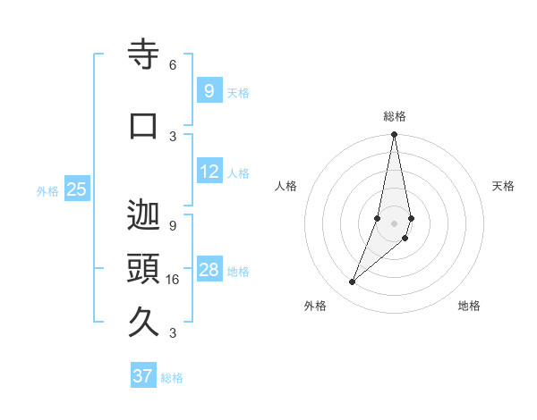 寺口 迦頭久さんの総格は37画の5点!