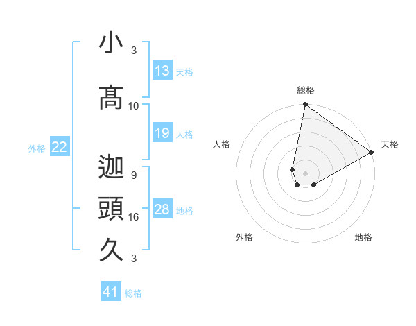 小髙 迦頭久さんを姓名の画数から五運を鑑定