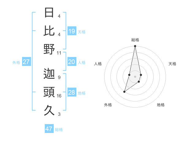 日比野 迦頭久さんを姓名の画数から五運を鑑定
