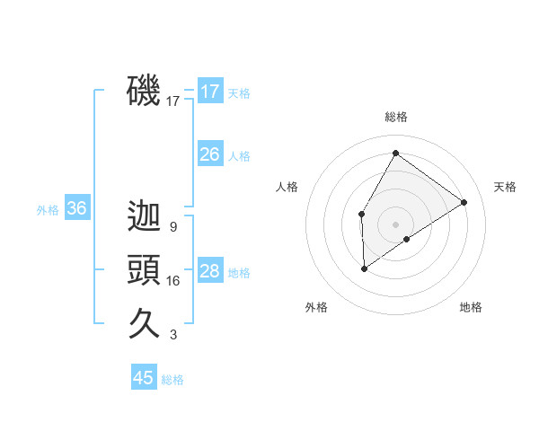 磯 迦頭久さんの総格は45画の4点!