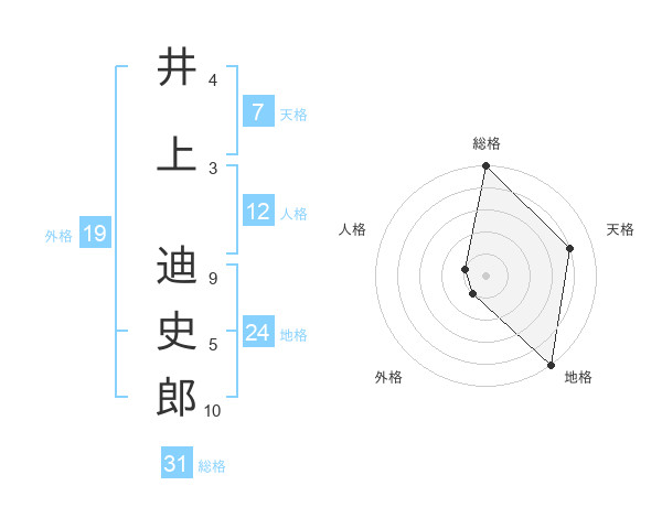 井上 迪史郎さんを姓名の画数から五運を鑑定