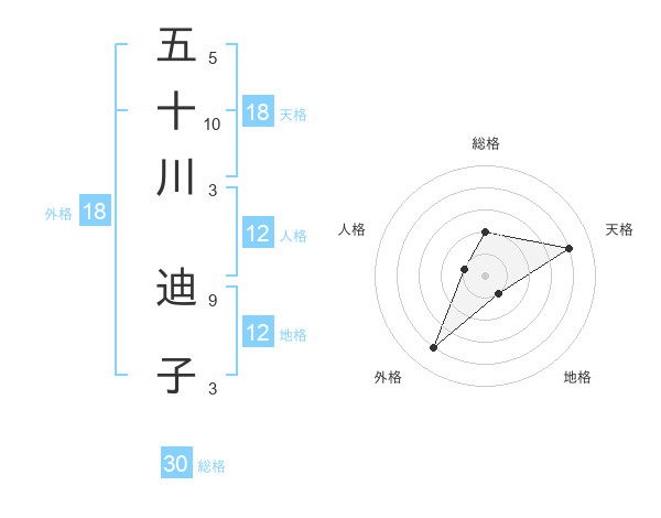 五十川 迪子さんを姓名の画数から五運を鑑定