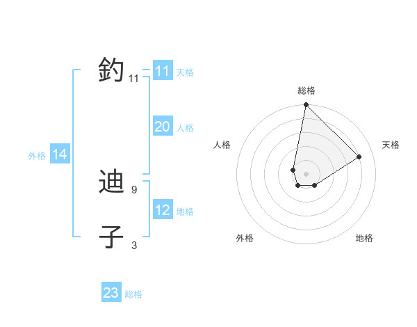 釣 迪子さんの総格は23画の5点!