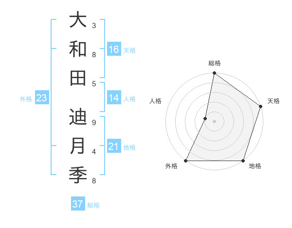 大和田 迪月季さんを姓名の画数から五運を鑑定