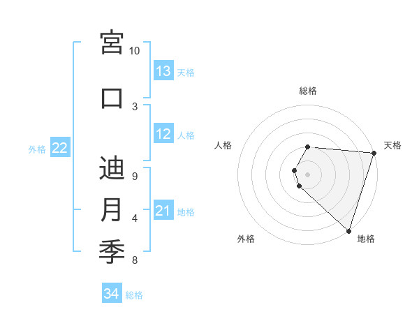 宮口 迪月季さんを姓名の画数から五運を鑑定