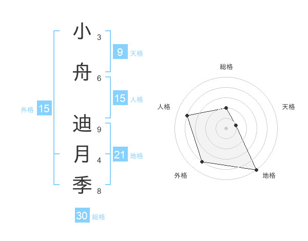 小舟 迪月季さんを姓名の画数から五運を鑑定