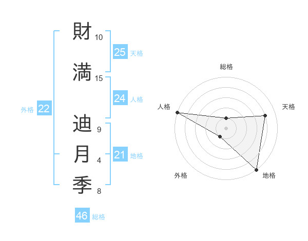 財満 迪月季さんを姓名の画数から五運を鑑定