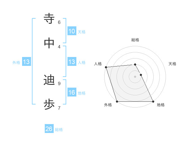 寺中 迪歩さんの総格は26画の2点!