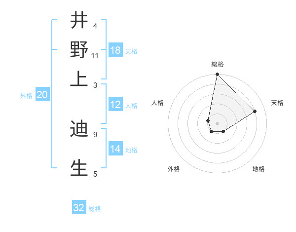 井野上 迪生さんを姓名の画数から五運を鑑定