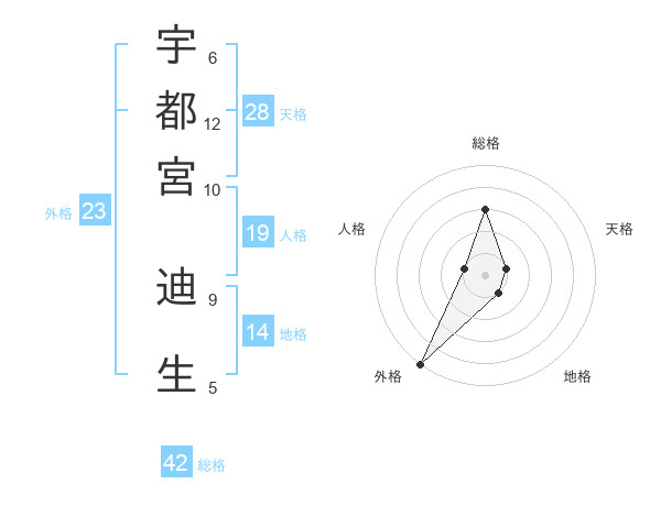 宇都宮 迪生さんを姓名の画数から五運を鑑定
