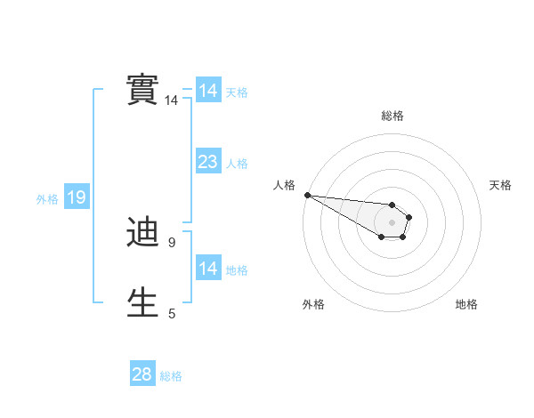 實 迪生さんの総格は28画の1点!