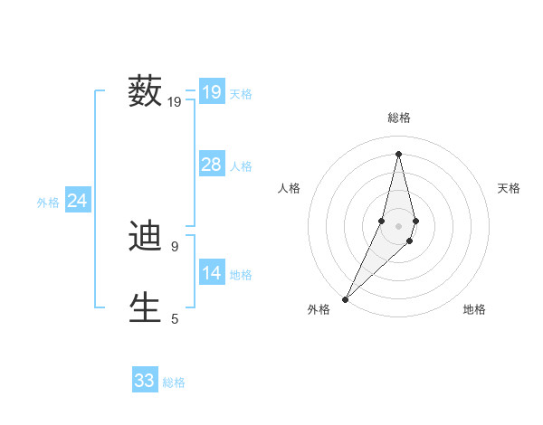 薮 迪生さんの天格は19画の1点!