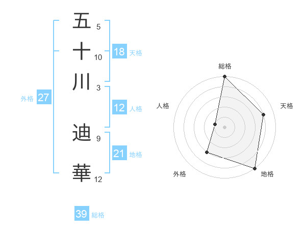 五十川 迪華さんを姓名の画数から五運を鑑定