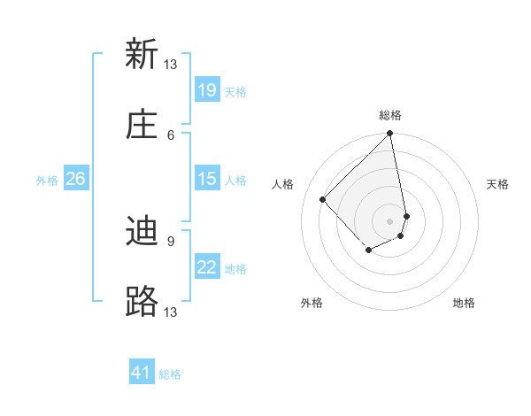 新庄 迪路さんを姓名の画数から五運を鑑定