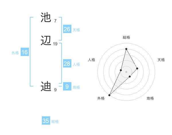 池辺 迪さんの外格は16画の5点!
