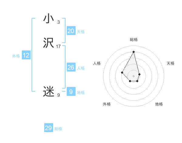 小沢 迷さんの総格は29画の4点!