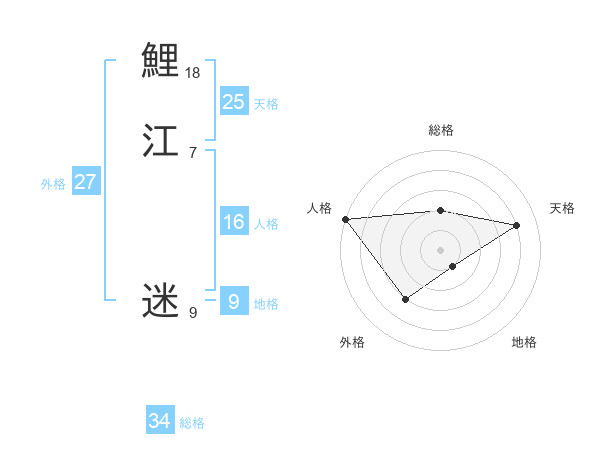 鯉江 迷さんを姓名の画数から五運を鑑定