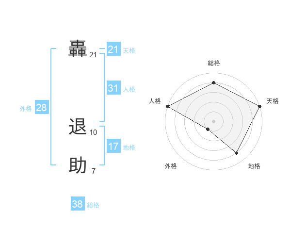 轟 退助さんの天格は21画の5点!