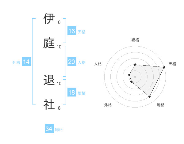 伊庭 退社さんを姓名の画数から五運を鑑定