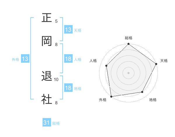 正岡 退社さんの外格は13画の5点!