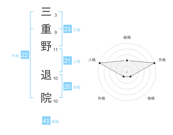 三重野 退院さんの総格は43画の2点!