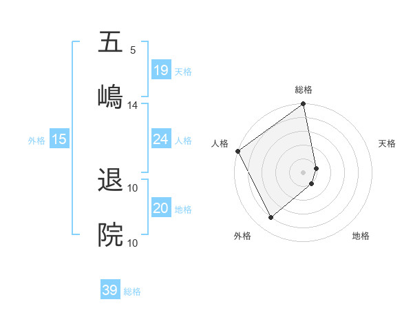 五嶋 退院さんの総格は39画の5点!