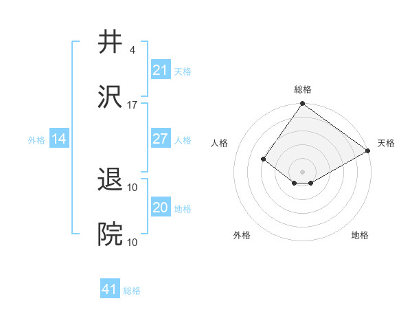井沢 退院さんの総格は41画の5点!