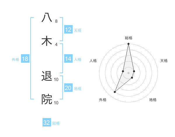 八木 退院さんの総格は32画の5点!