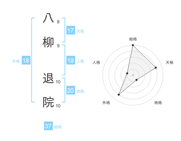 八柳 退院さんの総格は37画の5点!