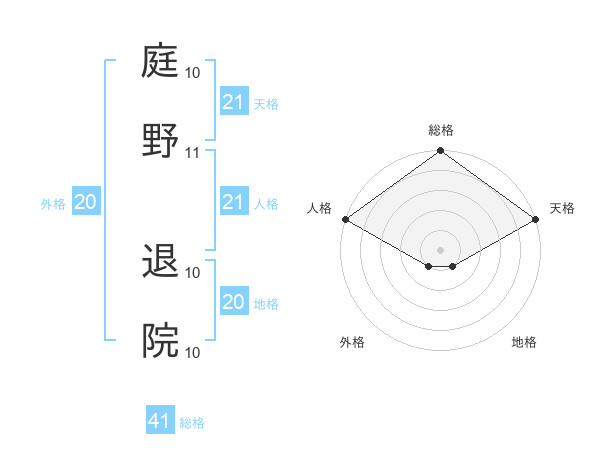 庭野 退院さんの天格は21画の5点!