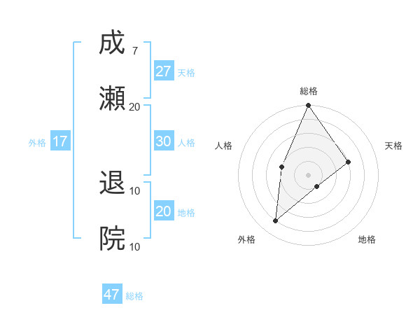 成瀬 退院さんを姓名の画数から五運を鑑定