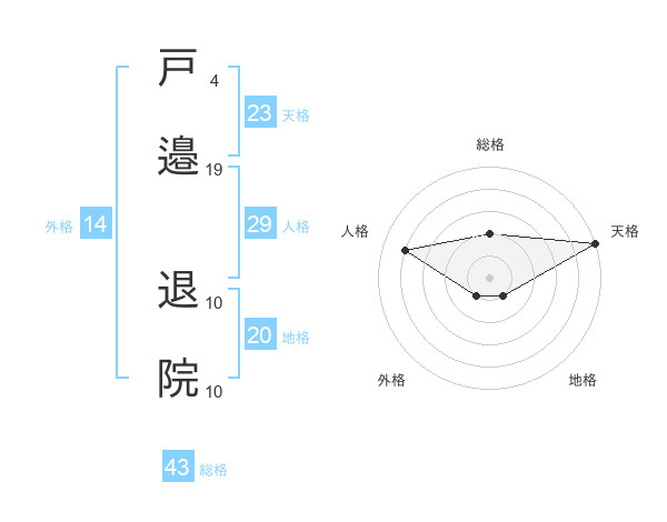 戸邉 退院さんを姓名の画数から五運を鑑定