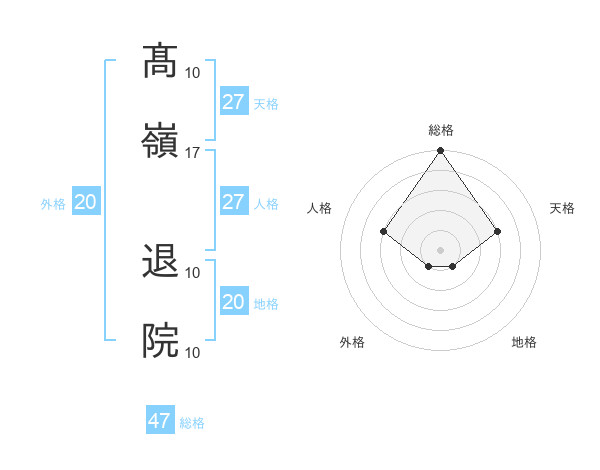 髙嶺 退院さんの総格は47画の5点!