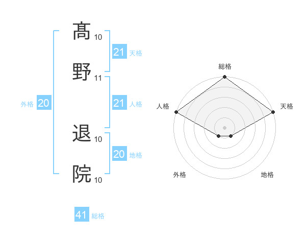 髙野 退院さんの総格は41画の5点!