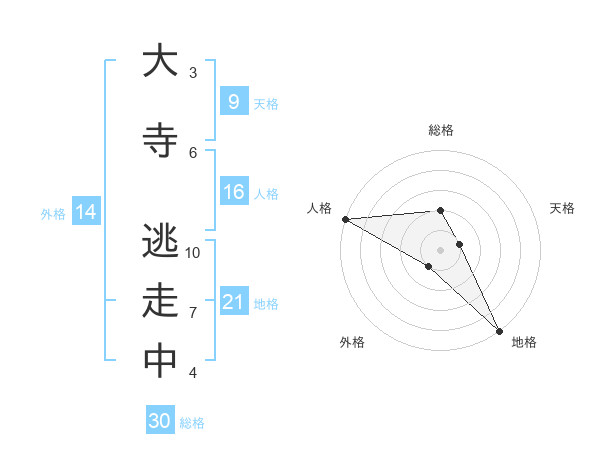 大寺 逃走中さんを姓名の画数から五運を鑑定