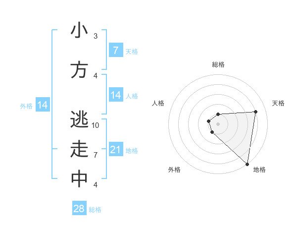 小方 逃走中さんの地格は21画の5点