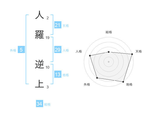 人羅 逆上さんの地格は13画の5点!