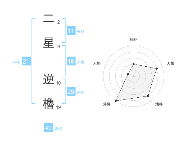 二星 逆櫓さんの総格は40画の2点!