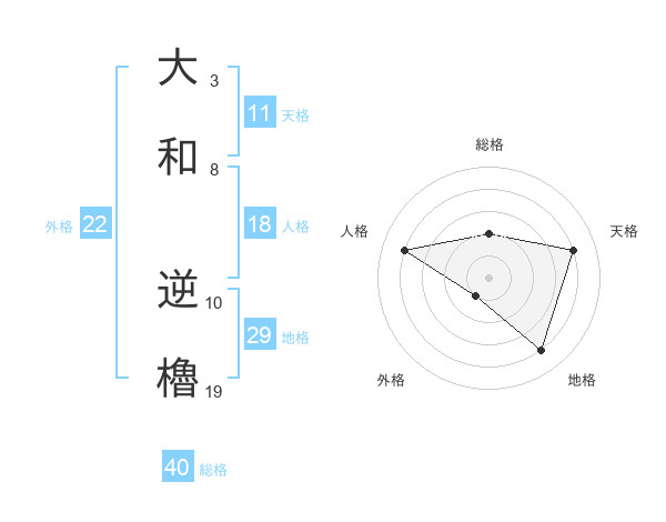 大和 逆櫓さんを姓名の画数から五運を鑑定