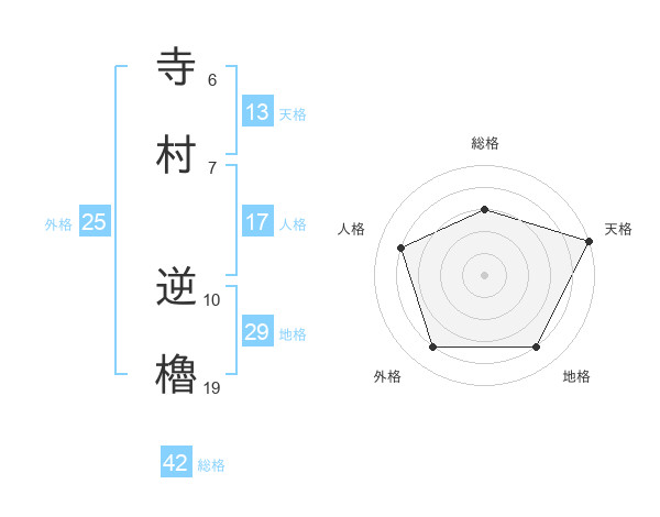 寺村 逆櫓さんの天格は13画の5点!