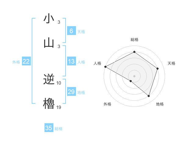 小山 逆櫓さんを姓名の画数から五運を鑑定