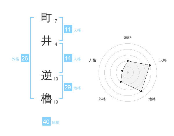 町井 逆櫓さんを姓名の画数から五運を鑑定